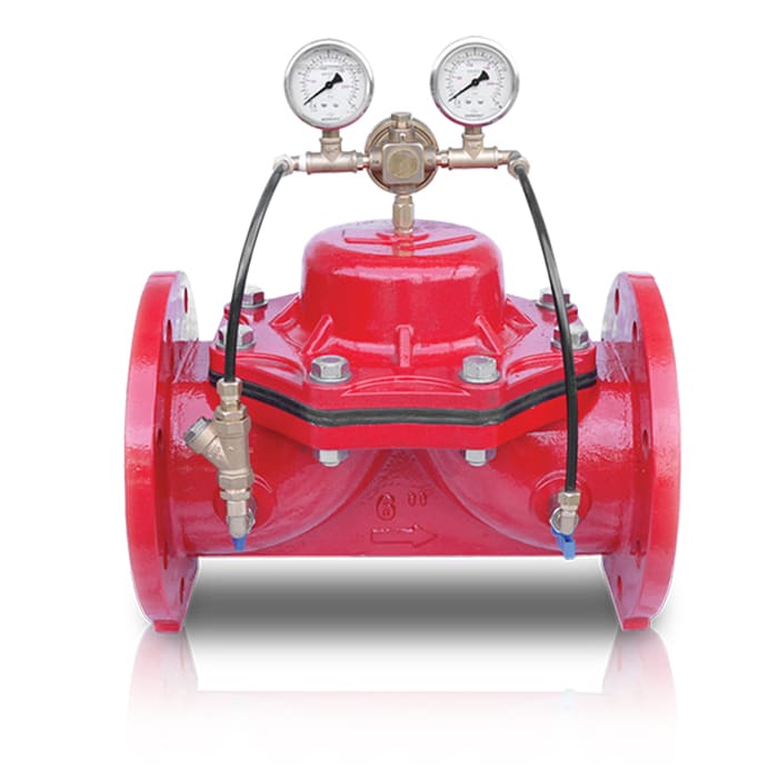 Basınç düşürücü vanalar çıkış basıncının ayarlanmasına olanak sağlar. Monte edilen pilot istenilen çıkış basıncı değerine ayarlanarak yüksek giriş basıncının sabit kalmasını sağlar. Basınç ve akış değişikliklerinden etkilenmez.